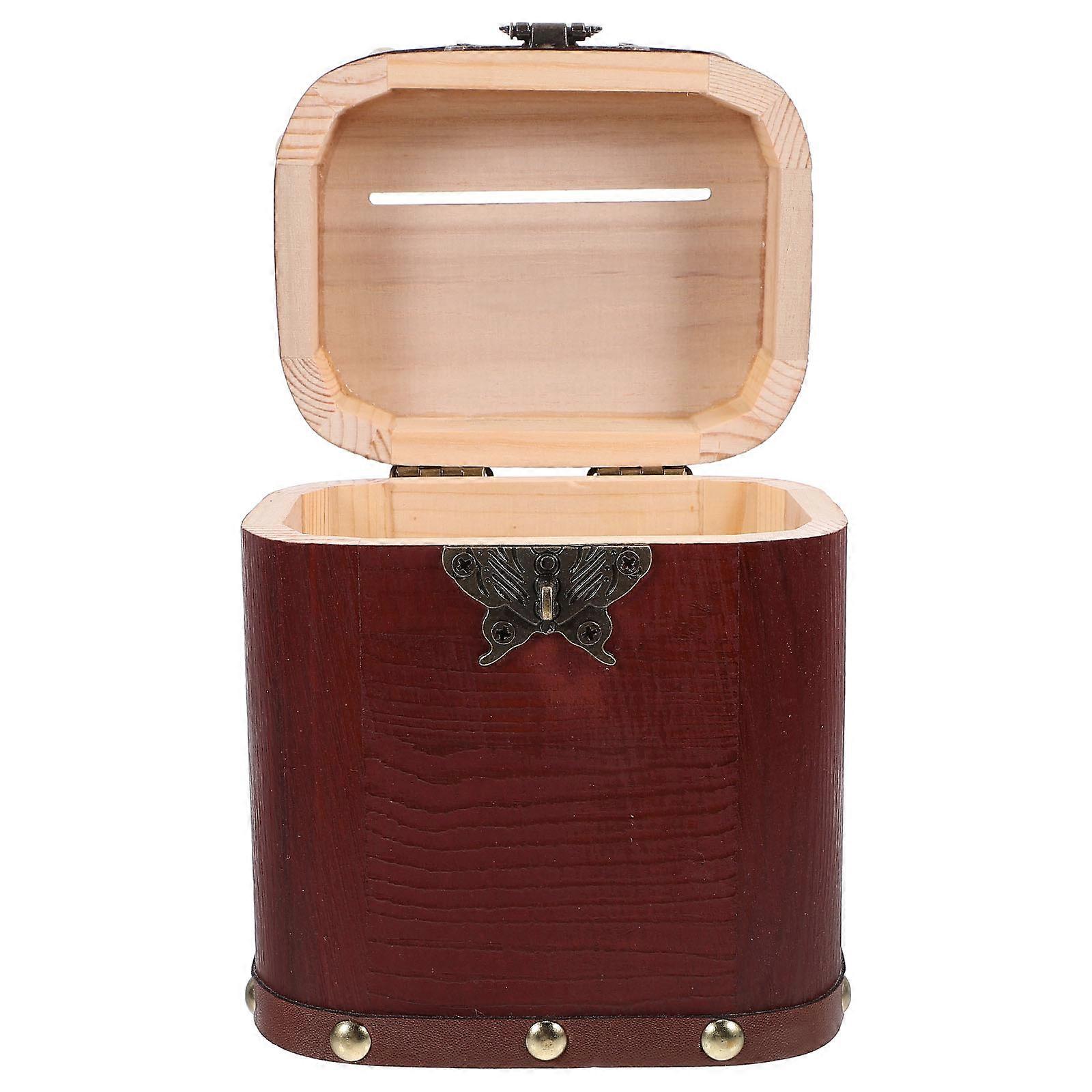 Wooden Money Box Secure Lock Box for Kids Retro Storage Chest
