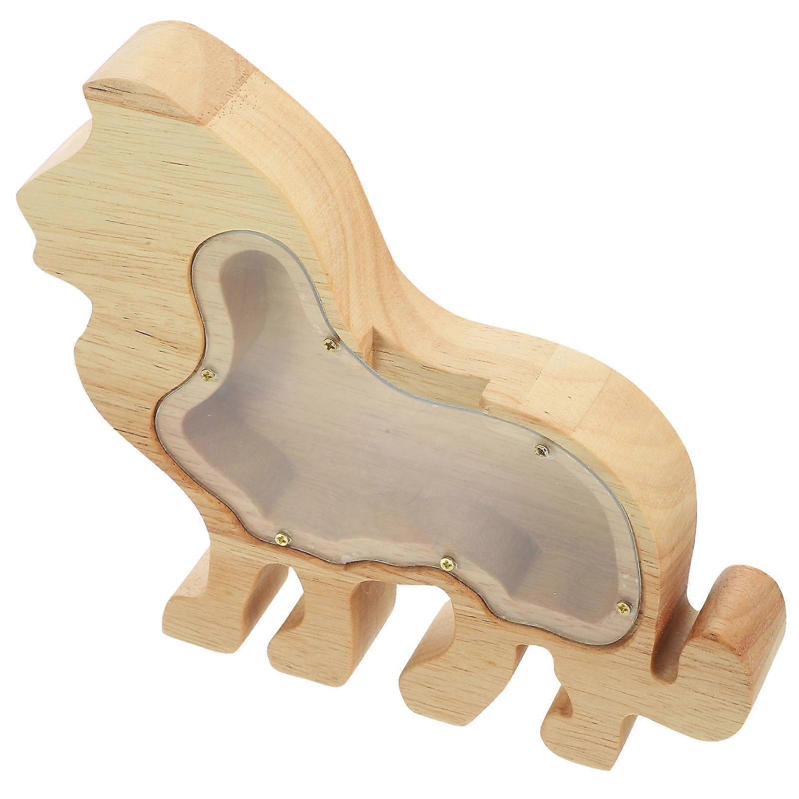 Lion Shape Wooden Piggy Bank Coin Storage Decorative Item Home Decoration Light Yellow 1Pack