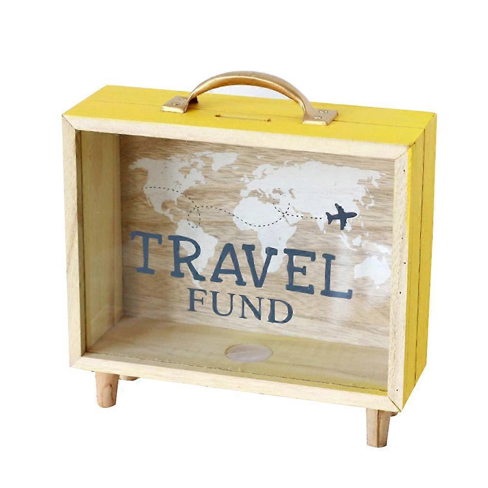 Wooden Coin Box Handle Slots Money Box Wooden Money Box Bedroom Decorative Standing Storage Piggy Bank (Yellow)