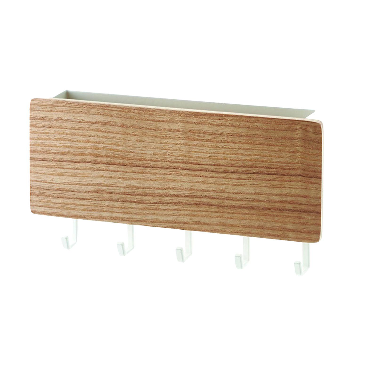 Wooden Key Holder Mail Organizer 5 Hooks Drilling Free Wall Mounted Key Holder Storage Shelf Wood Color