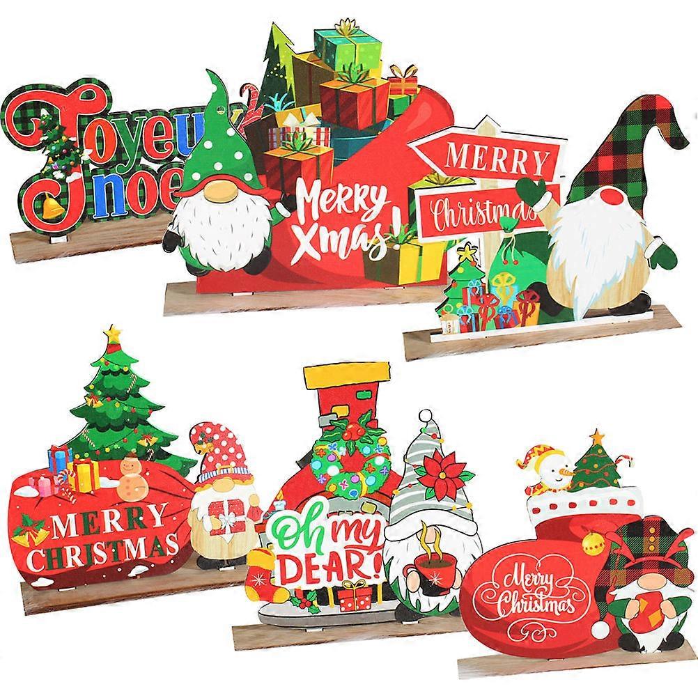 Wooden Decorative Christmas Gnome for Outdoor Garden Decoration Photo Prop Assorted Color 6Pcs
