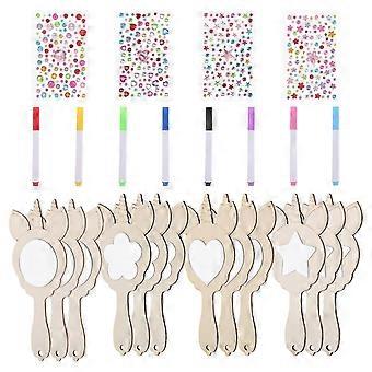 Wooden Hand Mirror Unfinished Unicorn Design For Diy Enthusiasts Assorted Color Decorative Item 1 Set