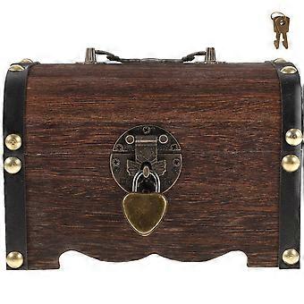 Wooden Treasure Box Creative Wooden Piggy Bank Safe Handmade Wood Carving Money Box Savings with Lock Small Size