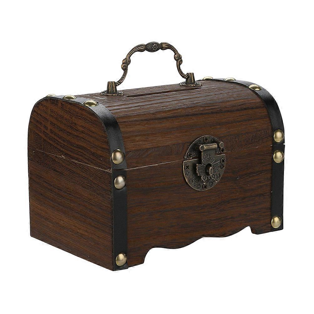 Wooden Box Treasure Piggy Bank for Coin Saving 2Pcs Coffee Color