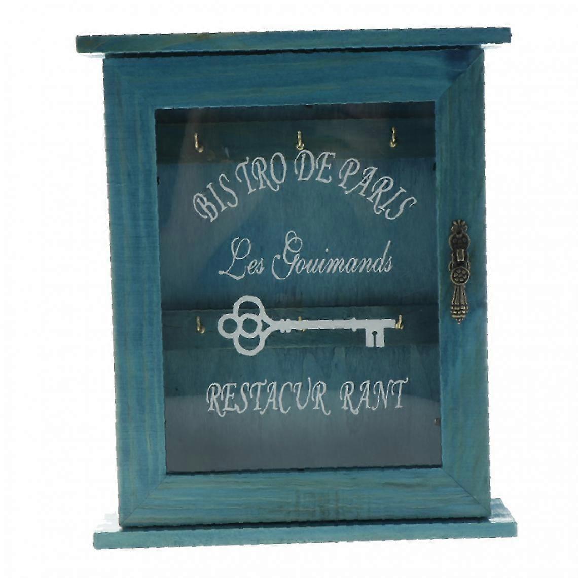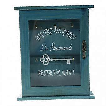 wooden key box with blue three-hook finish