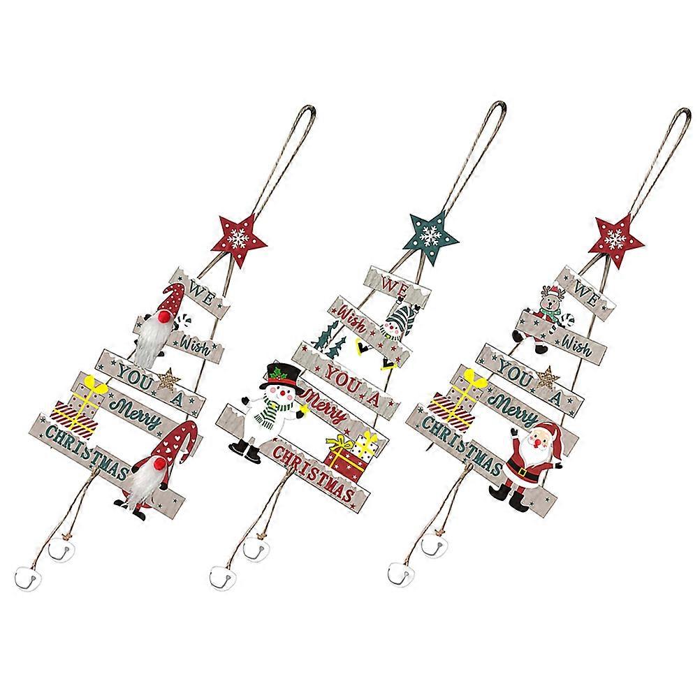 Wooden Xmas Tree Hanging Decor 9Pcs Assorted Design Christmas Decorations