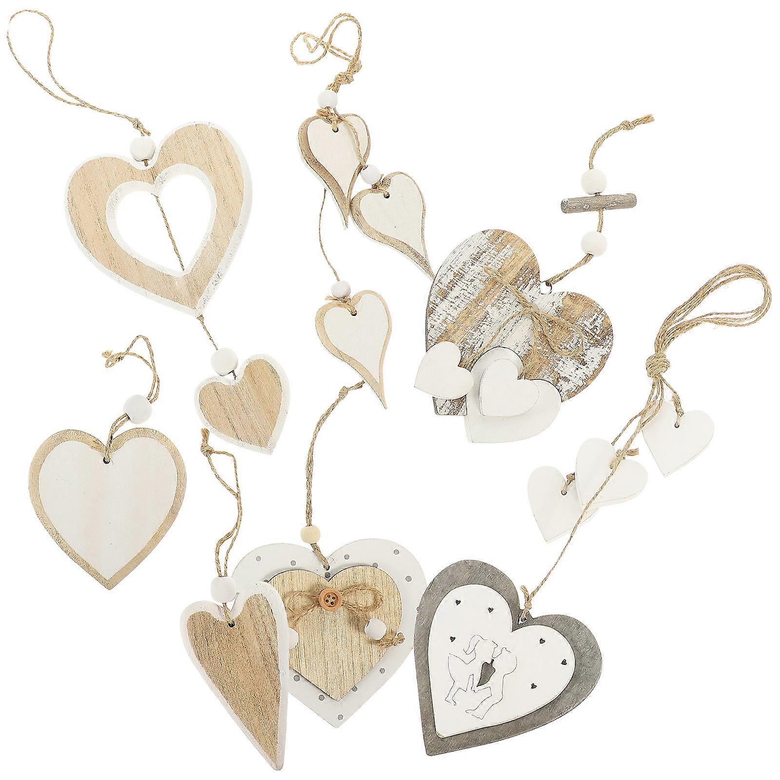 Heart Shape Wooden Pendant 2 Sets Delicate Home Decoration For Anniversaries And Baby Showers 10X10cm Hanging Feature