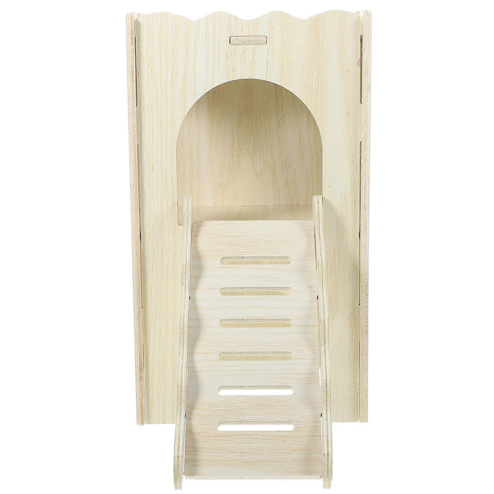 Wooden Hamster Hideout House for Guinea Pig Hideaway with Ramp