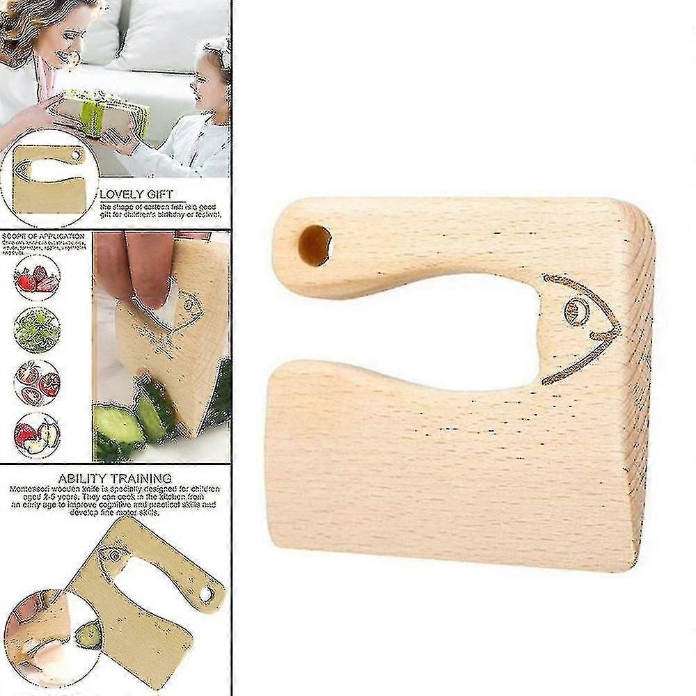 Wooden Toy Kids Knife Cooking Safe Cutting Vegetable Fruit CutterSAFE KNIFE: Specially designed for kids, does not cut skin and allows the child to take part in cooking dinner with the family. Develops fine motor skills.EASY TO OPERATE: The ergonomic handle design, helps children develop motricity and autonomy.SCOPE OF APPLICATION: Kids knife can cut tomatoes, zucchini, lettuce, strawberries, apples, bananas and other vegetables and fruits.MULTITUDE OF OPTIONS: Young children as well as older children can use these for heuristic play, pretend play and open-ended play.The whole body is polished and rounded, without sharp edges, and does not hurt your hands.Wooden cooking knives specially designed for children, let children experience the fun of cooking.Package included: 1 * Wooden KnifeNote:Due to the different monitor and lighting effect, the actual color of the item may be slightly different from the color shown on the pictures.Thanks for your support :)