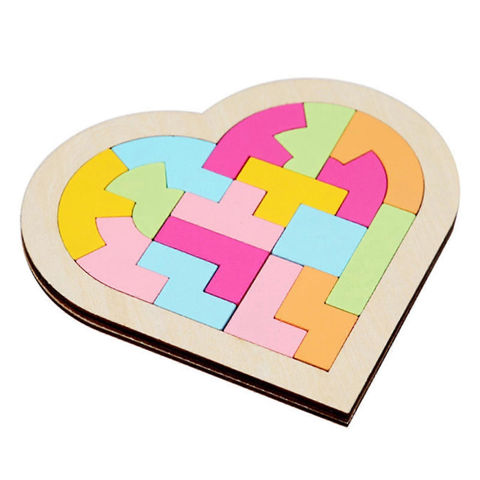 Wooden Puzzle Toy Colorful Love Heart Shape Wooden Jigsaw Kids Educational Toy