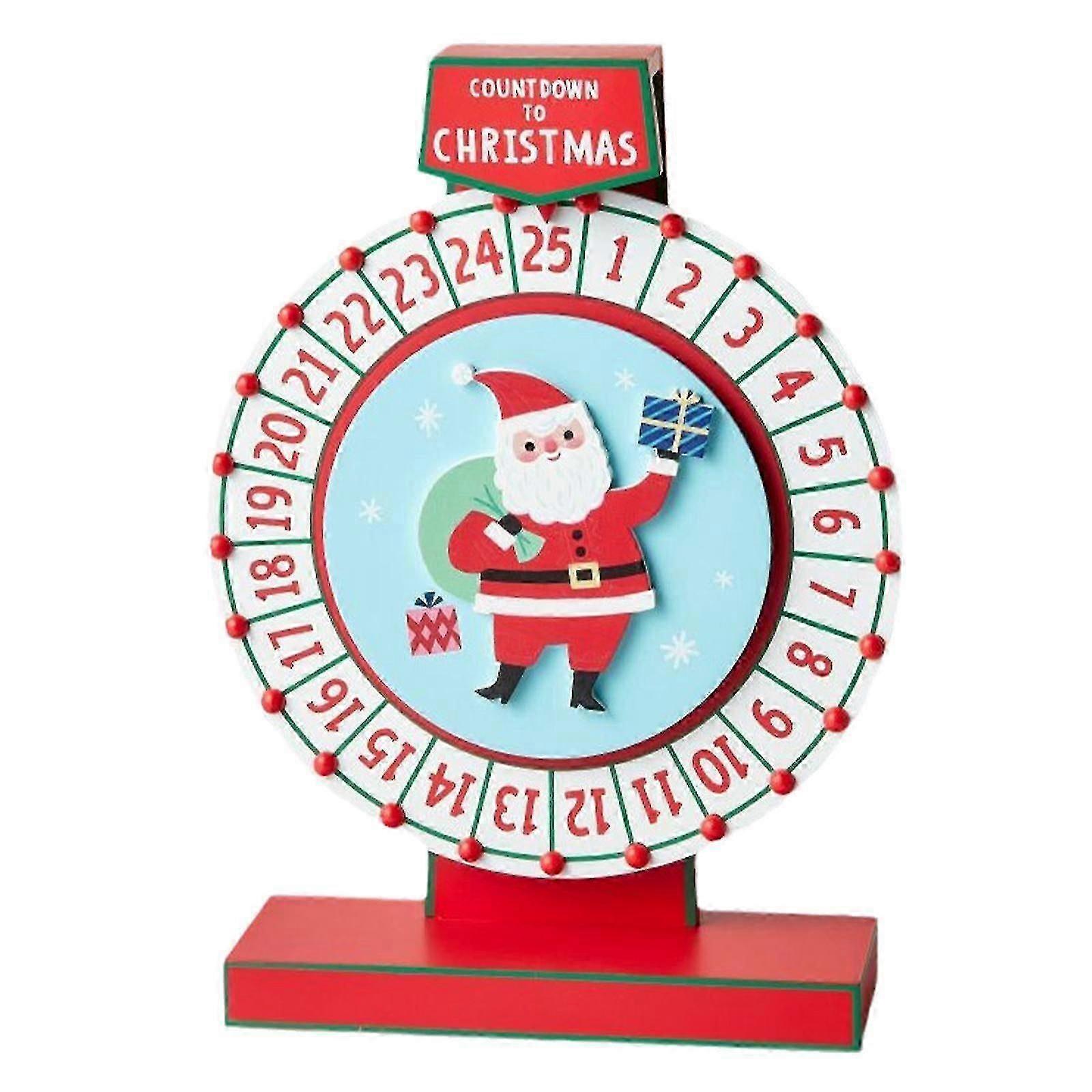 Wooden Santa Claus Turntable Decor Christmas Countdown Advent Calendar Wheel Ornament For Xmas