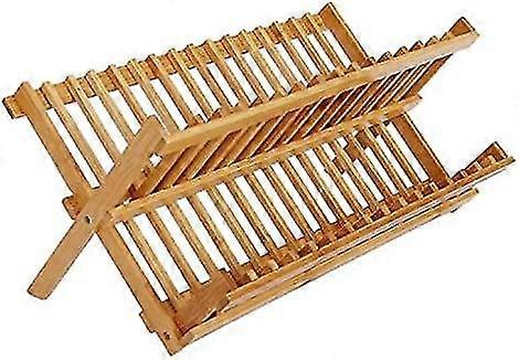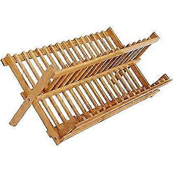 Wooden Dish Rack 2 Tier Folding Dish Drainer Drying Rack 16 Plates Plate Rack Stand Holder