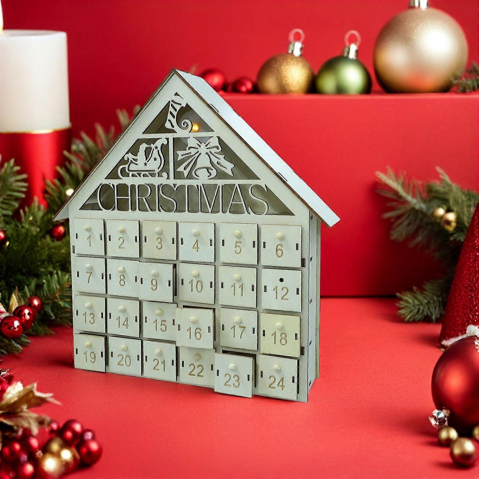 Wooden Advent Calendar House: LED Christmas Countdown Calendar with 24 Fillable Drawers - DIY Holiday Countdown Decor for Family Christmas Gift Surpri