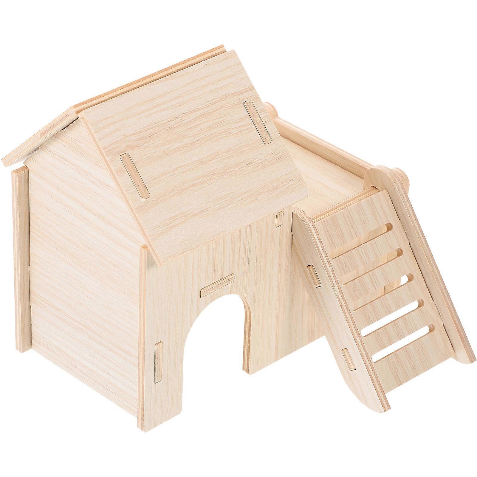 Wooden Guinea Pig Hideout House Beige Safe and Fun for Small Pets with Natural Wood Material