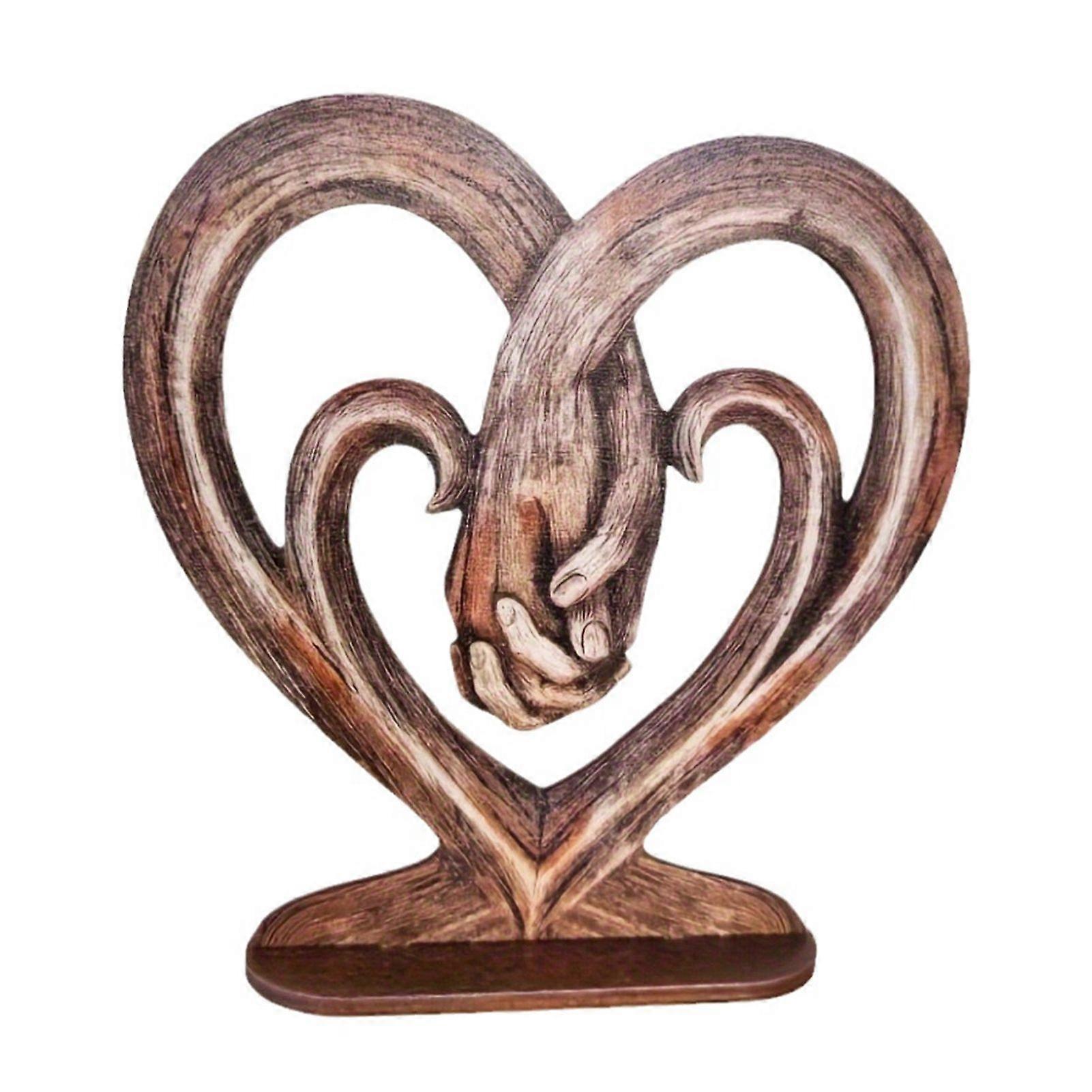 Wooden Heart Ornament Tabletop Decor Love Hearts Holding Hands Ornament Intertwined Hearts Figurine Gift for Anniversaries Birthdays Valentine's Day