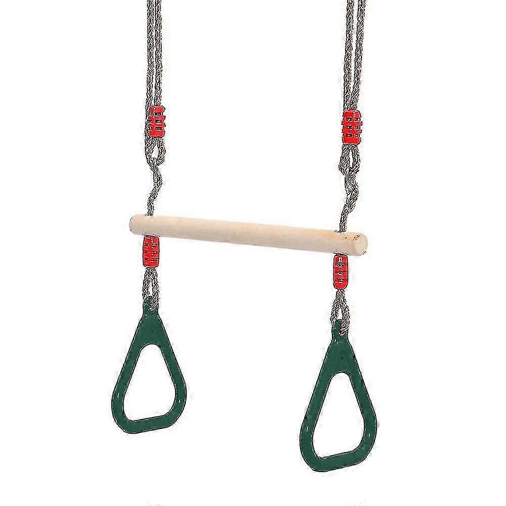 Wooden Trapeze Swing Bar With Plastic Gym Rings For Indoor Outdoor Fun Kids Children Adult Fitness