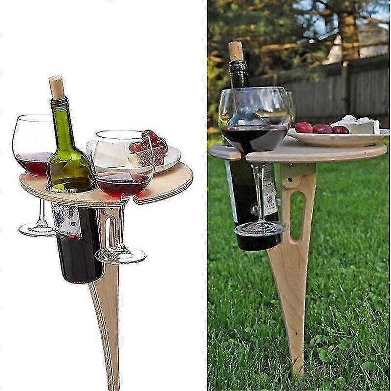 Wooden Outdoor Wine Table Foldable Round Desktop Mini Picnic Table Modern Wine Glass Rack hwy169