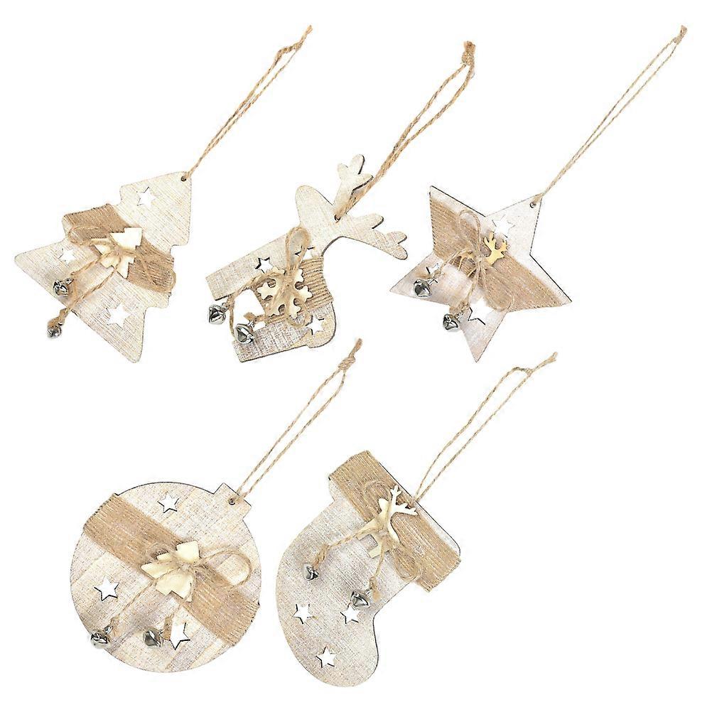 Wooden Xmas Tree Hanging Elk Shape Pendant for Decoration 5Pcs Set