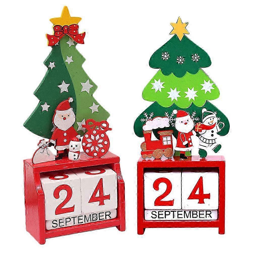 Wood Calendar Christmas Decor - 2 Pcs Desk Topper with Tree and Santa