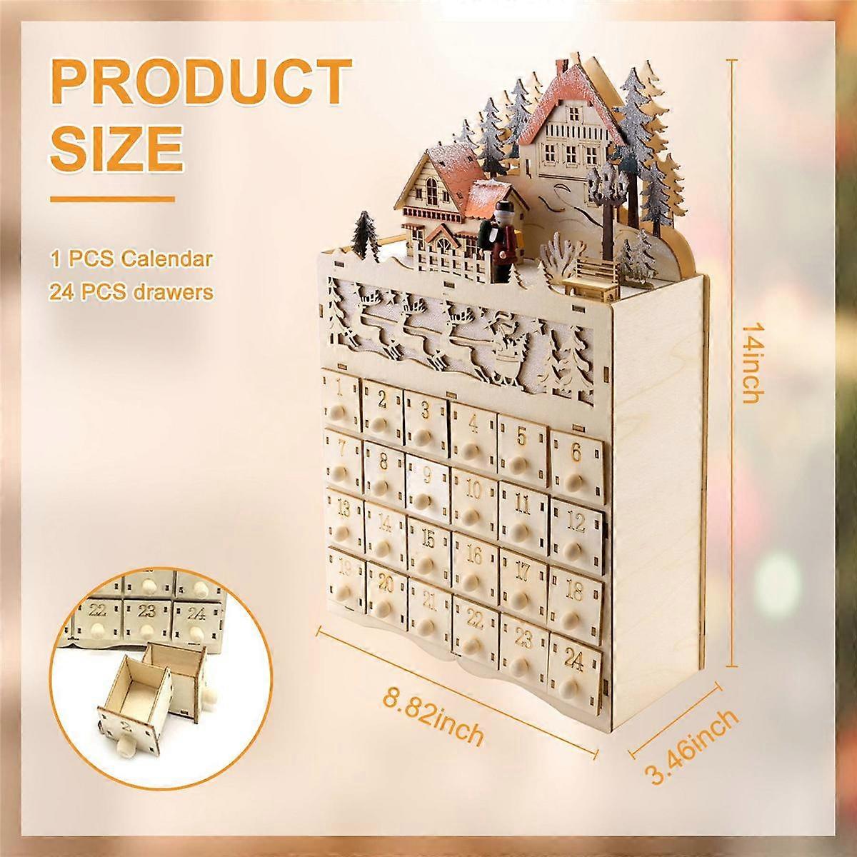 Wooden Christmas Calendar Countdown to Christmas LED Holiday Decoration 24 Drawers with LED Light