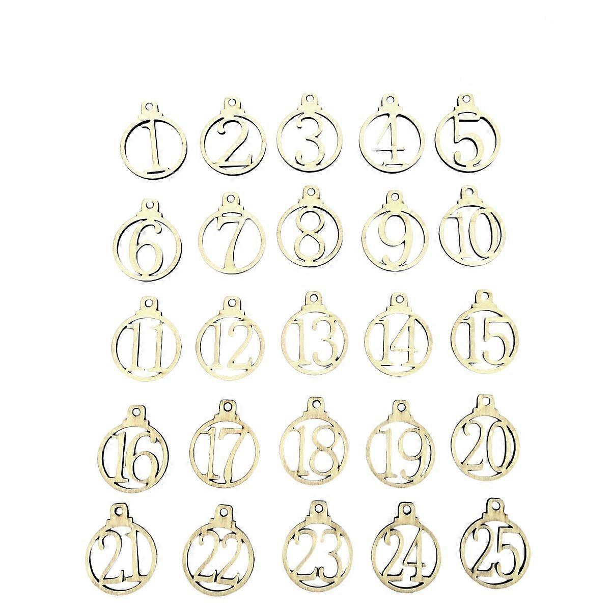 Wood 1-25 Digital Christmas Arrival Countdown Calendar Round Tag Wedding Christmas Favor Label Gift Tags Cards