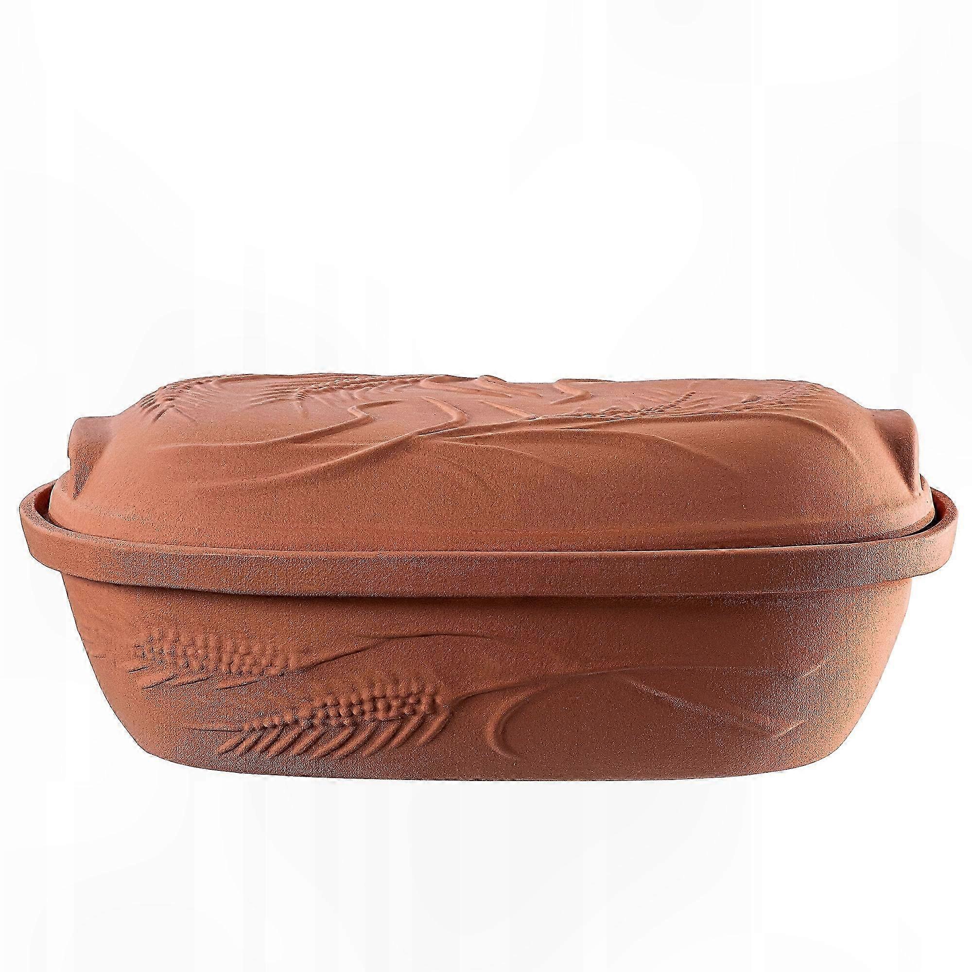 Oval Clay Pot with Lid, 4.5L Roman-Style Earthenware Dish for Cooking and Serving