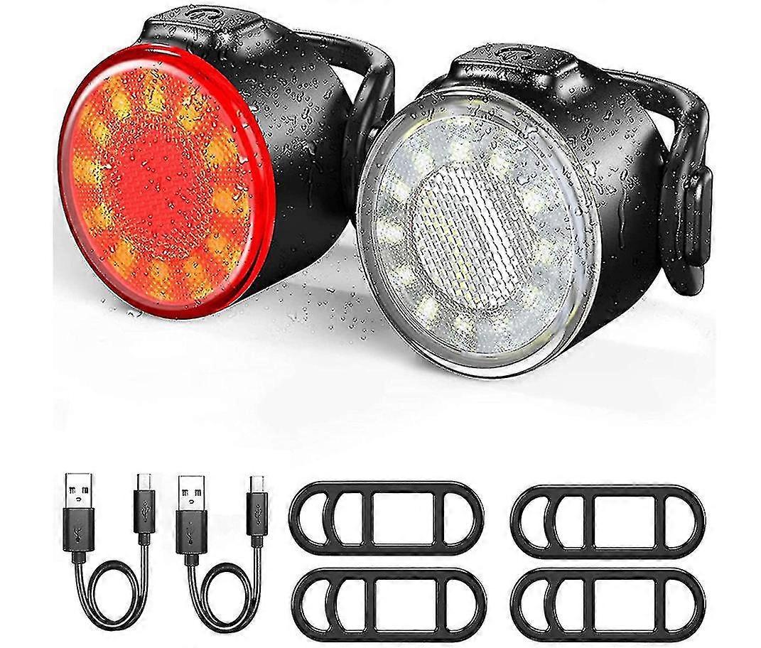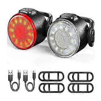Led Bicycle Light Set, Headlight And Taillight Combination, Usb Rechargeable And Super Bright 6 Light Mode, Ipx5 Waterproof Front And Rear Bicycle Lig