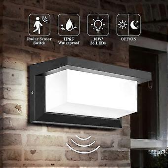 Led Outdoor Wall Light With Motion Sensor, 18w Outdoor Lighting Waterproof Square Radar Induction Control Light For Patio Balcony Garage Workshop-