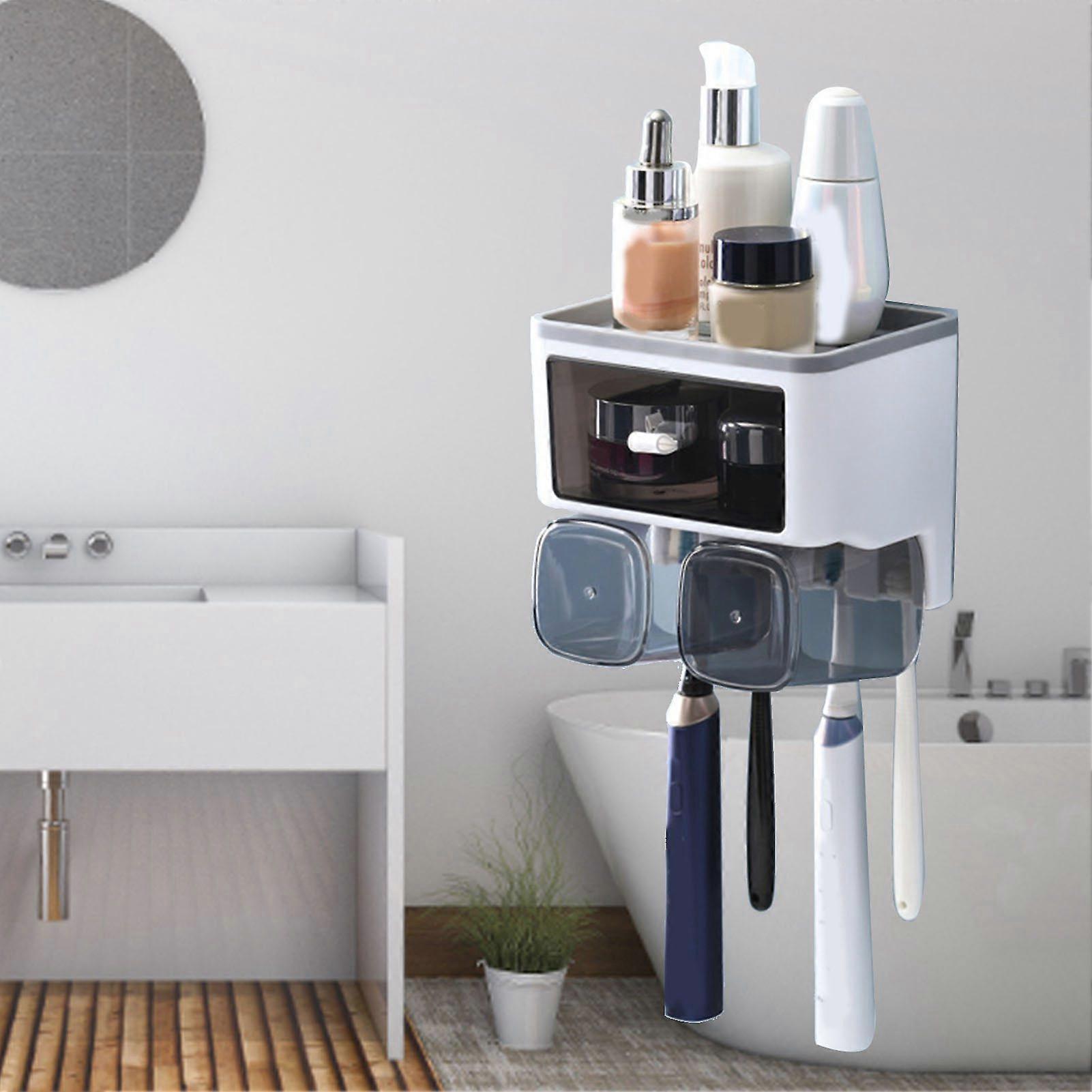 Toothbrush Shelf Punch Free Wall Mounted Mouthwash Cup Holder Toilet Storage Rack White 2 Cups