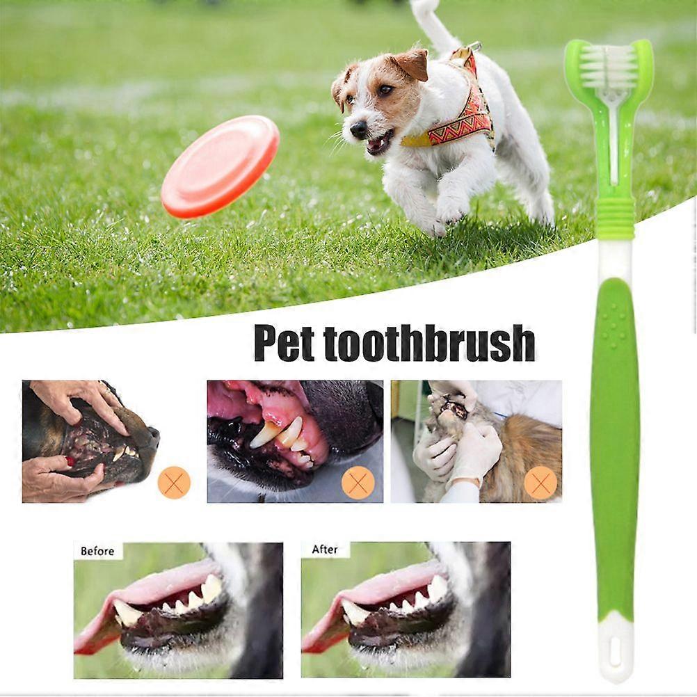 Dog Toothbrush Pet Dental Care Triple Head Toothbrush Convenient Comfortable Pet Toothbrush Pet Supplies