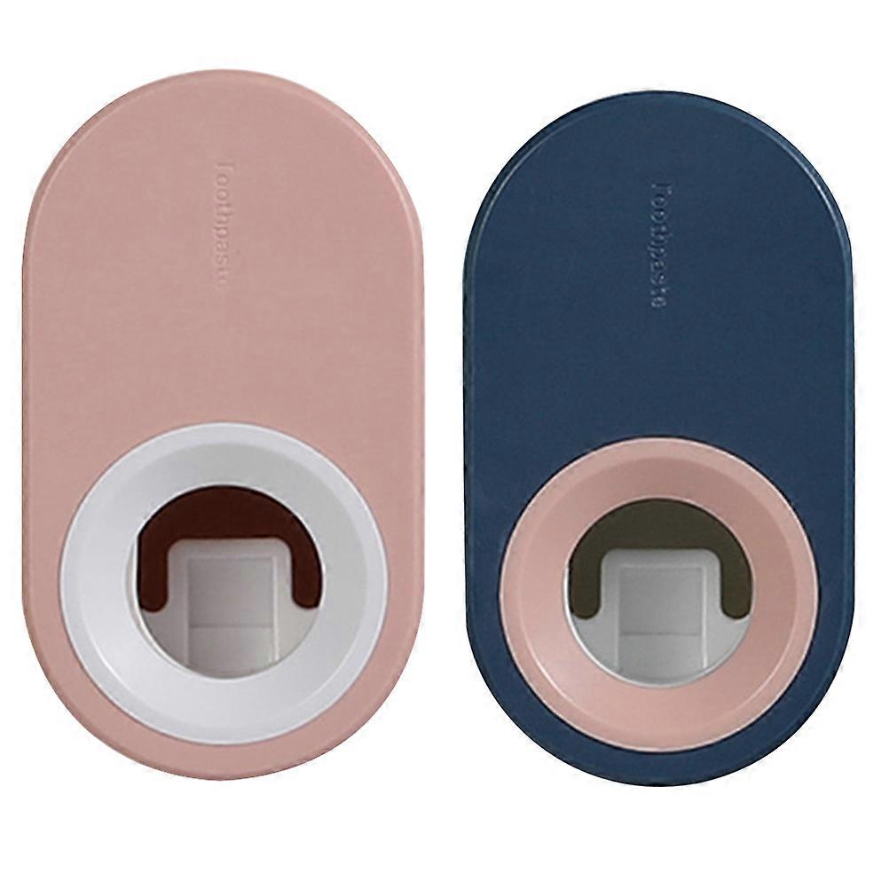 Toothpaste Dispenser Stands Bathroom Wall Mounted Punch Free Squeeze Blue Plastic 2Pcs