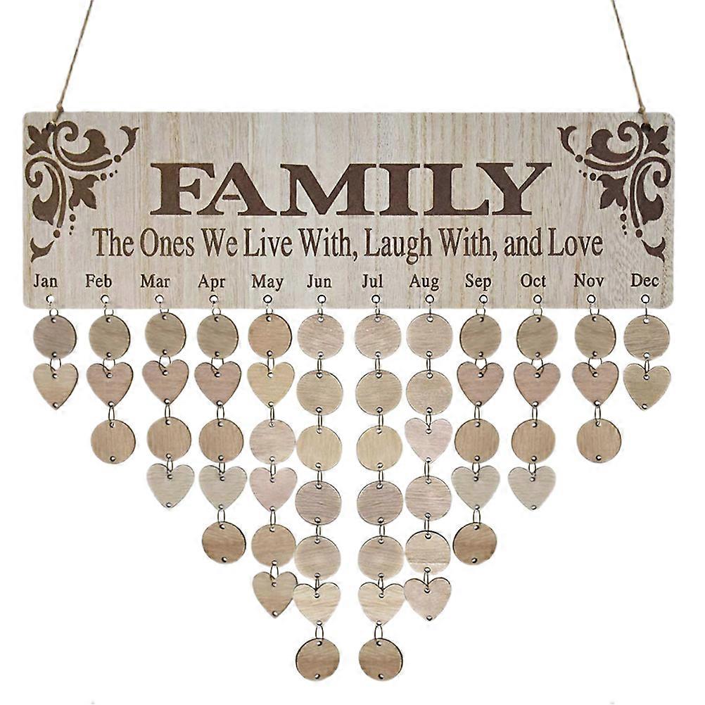 Family Birthday Calendar with Tags Wooden DIY Wall Hanging Board Birthday Reminder Calendar Plaque Gifts for Mom