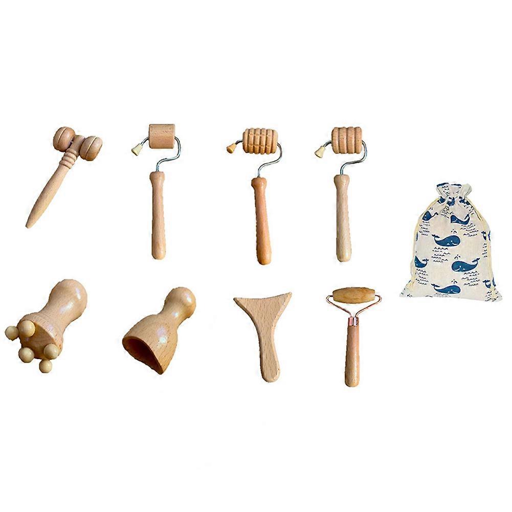 Eight in One Massage Hand Roller Massagers for Neck Wooden Massager Tool for Back Rolling Foot Massager the Face Ball with Bag