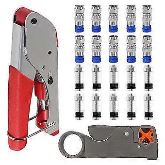 Coax Cable Crimper Tool Kit With 20pcs F Type Rg59 Rg6 Compression Connectors Coaxial Cable Stripper