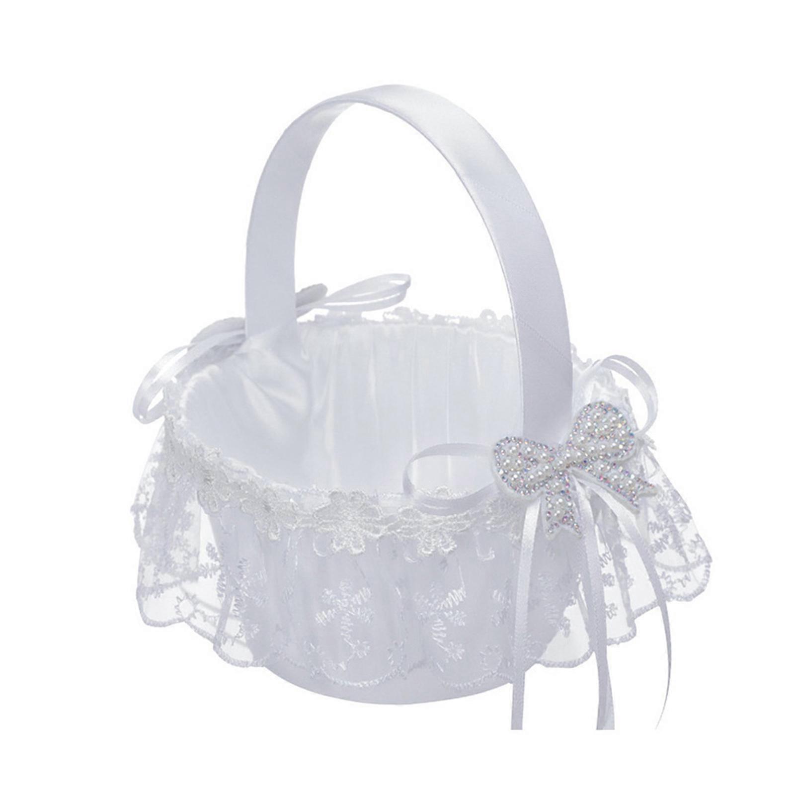 Beautiful Rhinestones Decorated Basket Delicate White Wedding Flower Basket for Wedding Ceremonies