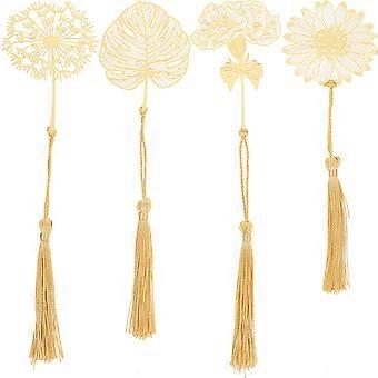 Beautiful Metal Bookmarks With Tassel Monstera Shape Smooth Surface Students 4Pcs