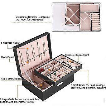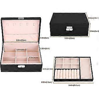 Jewelry Box Organizer, 2-layer Lockable Jewelry Box, Soft Velvet Lining Ring