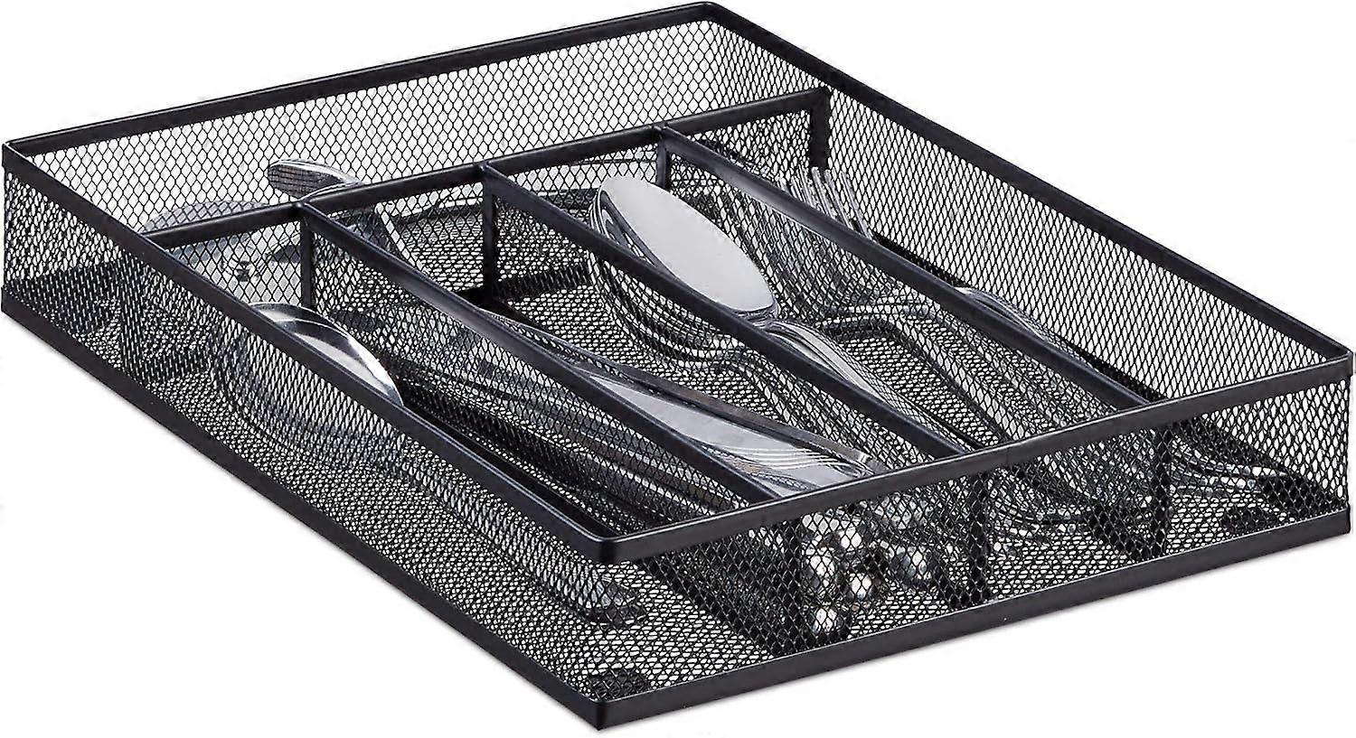 Drawer Organizer, Cutlery Tray Silverware Flatware Storage Divider for Kitchen, Mesh Wire with Non-slip Foam Feet, 5 Component