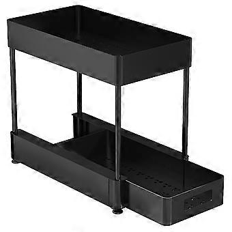 Under Sink Organizer with Pull Out Shelf for Kitchen Bathroom Storage 2-tier Black Plastic Carbon