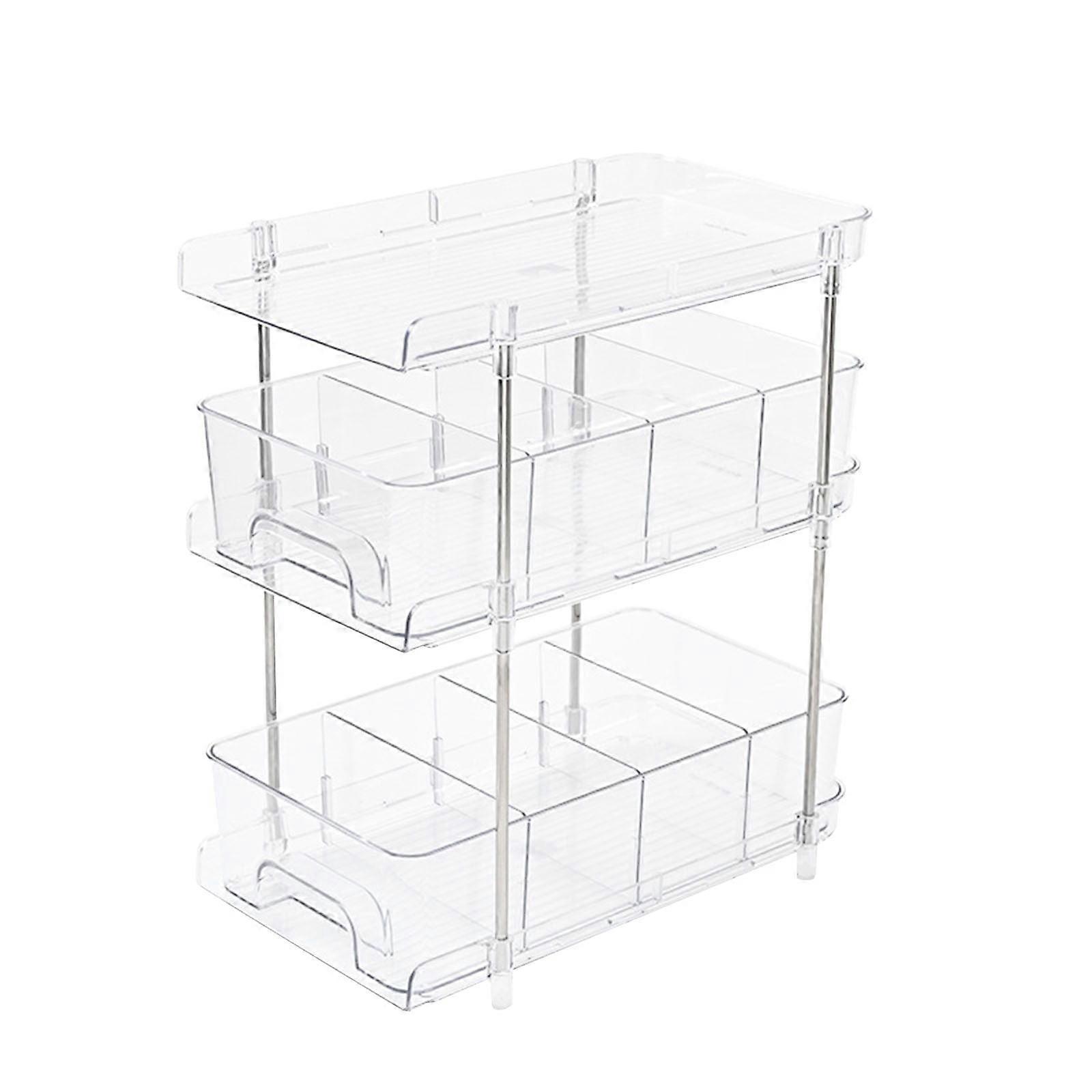 Lmueinov Pull Out Organizer, Clear Under Sink Rack Container, Multipurpose Bathroom Cabinet Organizer for Kitchen, Counter, Closet Storage