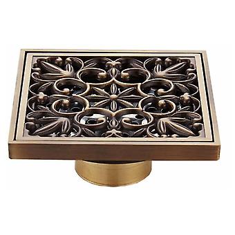 Brass Bathroom Floor Drain - Antique Unique Carved Flower Square Shower Drain for Garden Toilet 10 10 cm 7