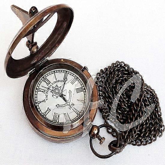 Brass Nautical Sundial Clock Antique Victorian Sun Dial Pocket Watch.