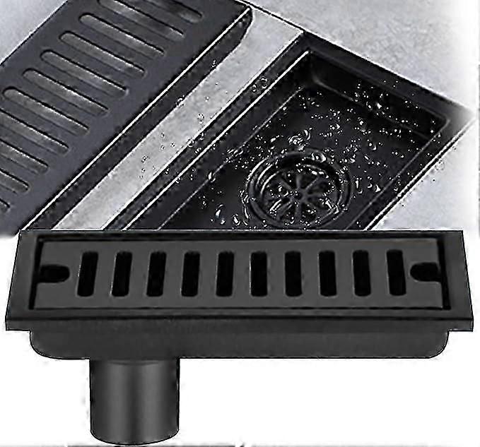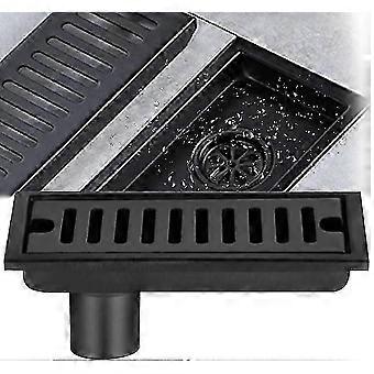 Rectangular Floor Drain, Black Stainless Steel Floor Drain 20x10 cm Shower Floor Drain with Double Filter for Toilet Bathroom Drainage Kitchen Balcon