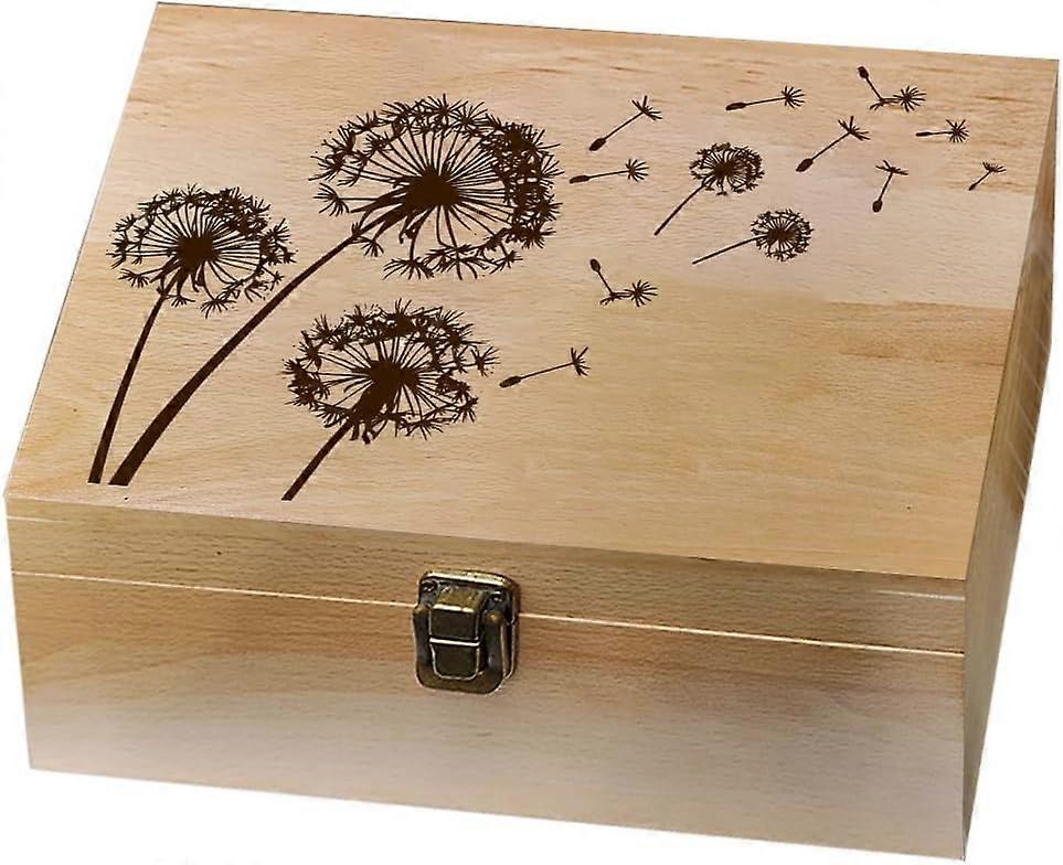 Rectangle Wooden Memory Keepsake Boxes with Lids for Anniversary Wedding Memory Birthday Valentines Day Dandelion 24.5x19.5x10.3cm