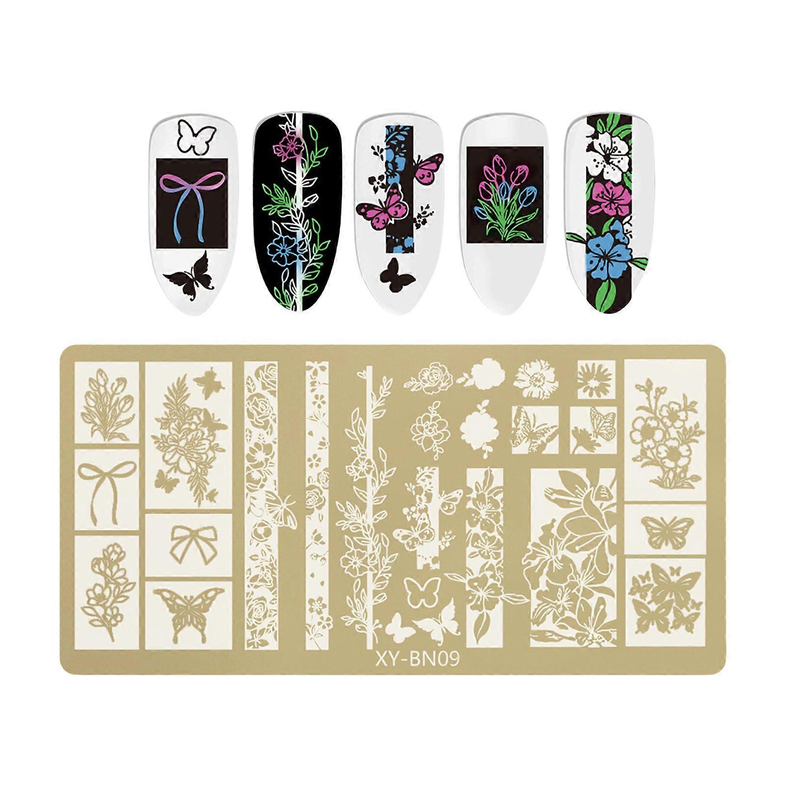 Rectangular Stainless Steel Nail Stamping Plate with Floral Butterfly Art Manicure Accesories For Salon DIY Application