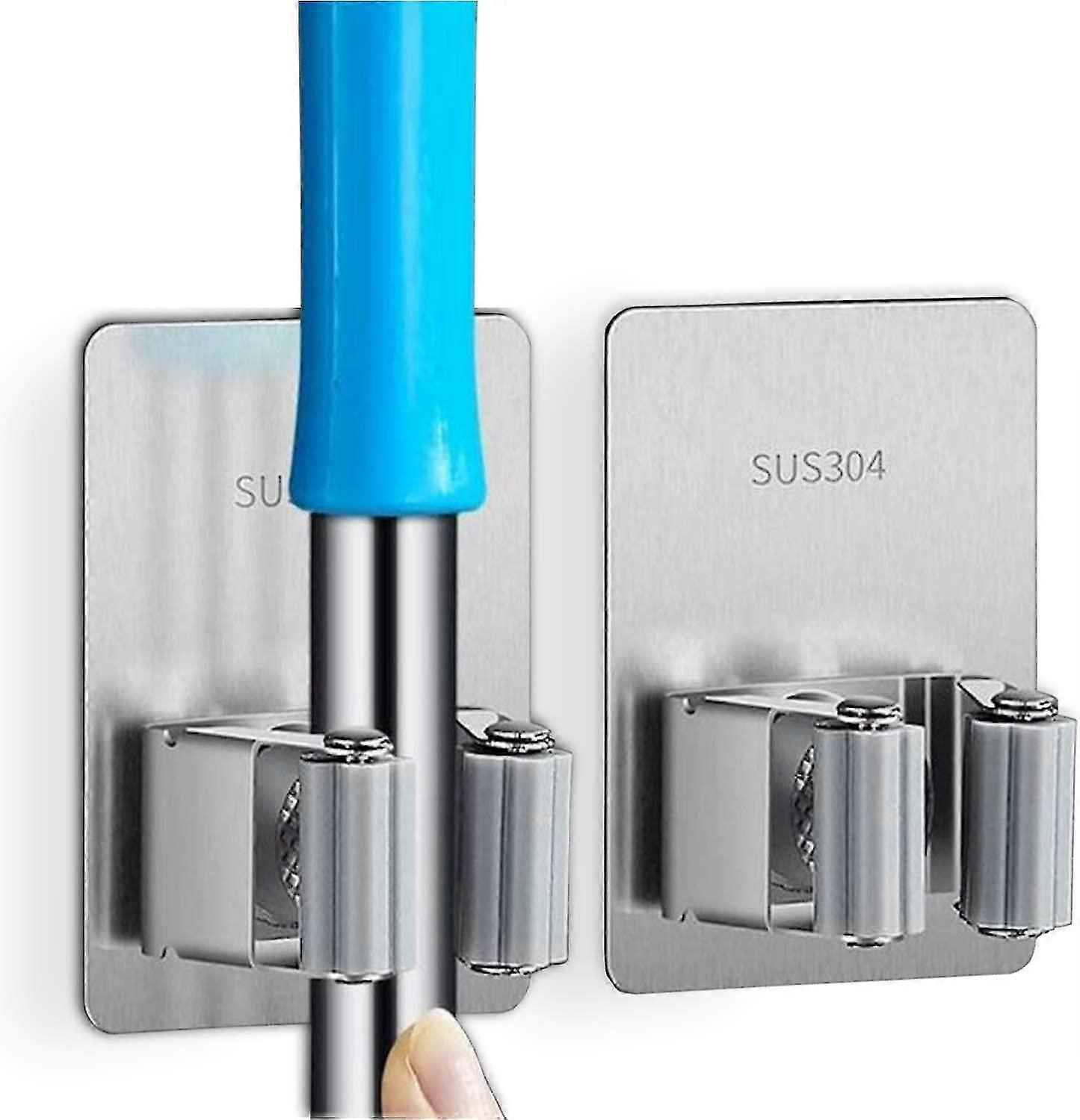 Broom Mop Stainless Wall Mount Holder Self Adhesive Tape, Brush Broom Gripper Holds, Storage Racks &