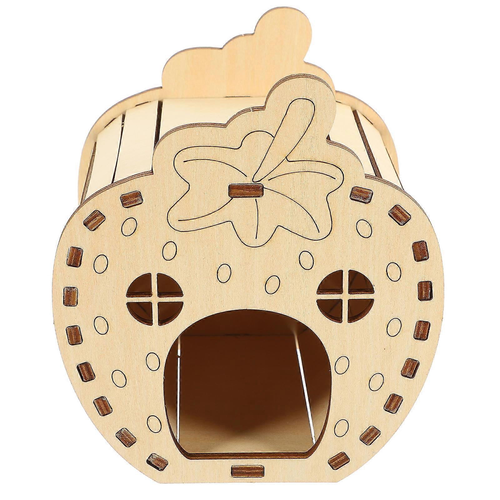 Hamster Habitat Hide Wooden Hamster Hideout Hut For Rabbits Diy Assembly 11.7x9.9x13cm 1Set