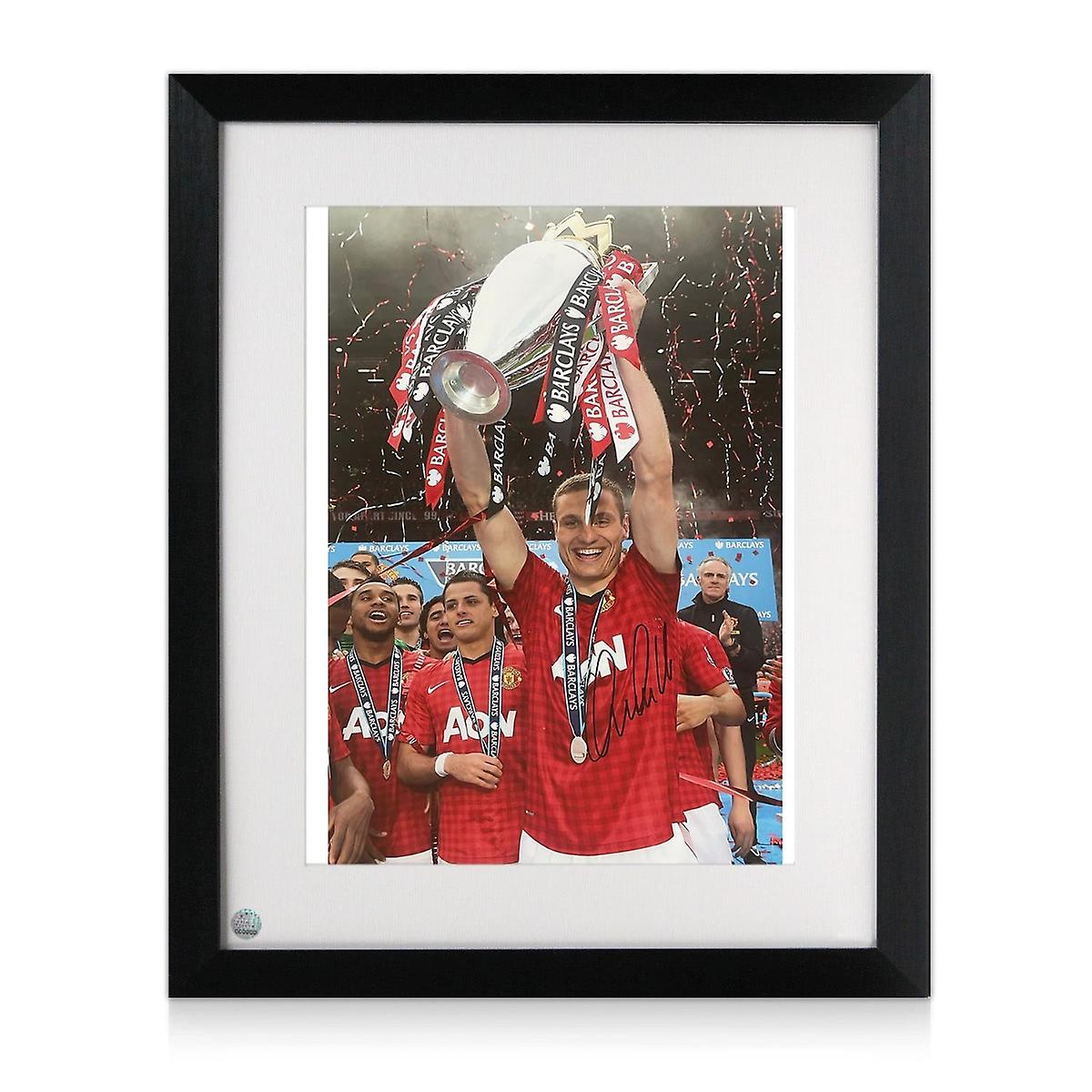 Nemanja Vidić Signed Manchester United Football Photo. Framed