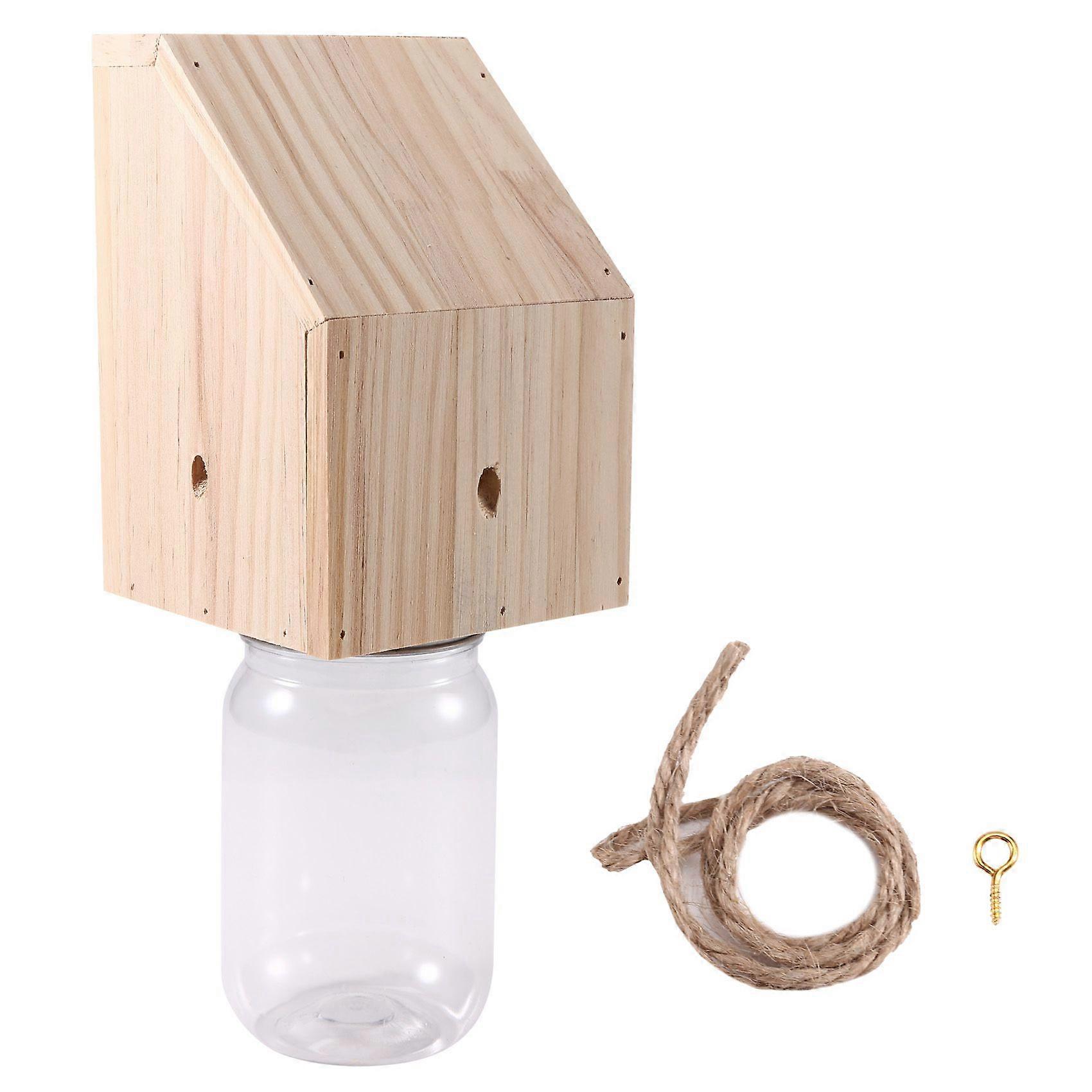 Carpenter Bee Trap for Outside Shed Style Nature Hanging Wood Trap for Outdoor Bee Vault Plastic Jar