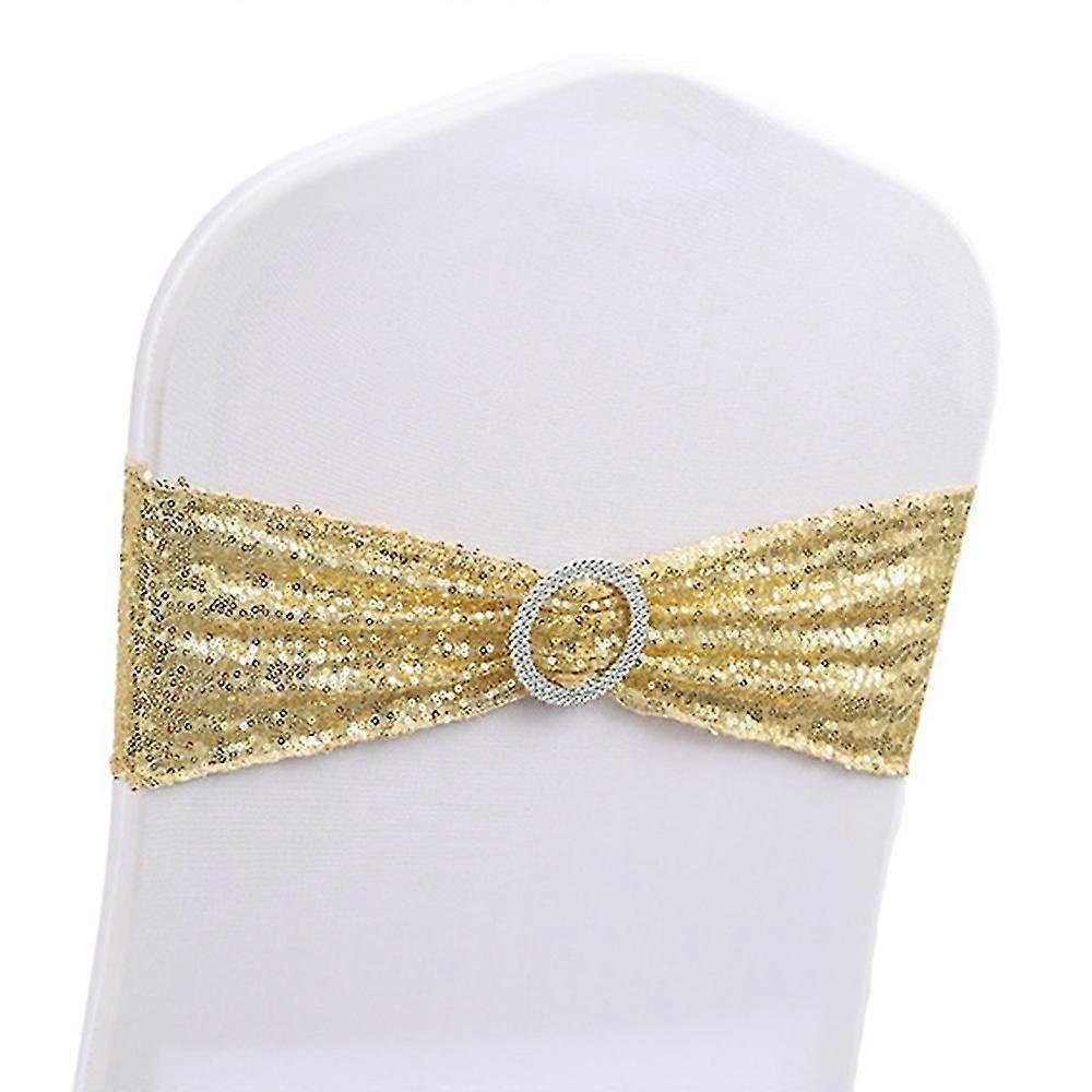Sequin Chair Sashes Stretch Chair Bands Spandex Polyester Bows For Party Hotel Wedding Banquets Decoration -20 Pcs